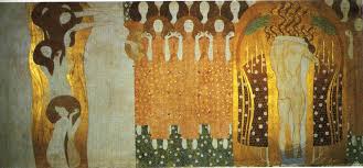 In the basement, they've installed a "frieze" by Gustave Klimt, the Beethoven frieze. Here's a bit; you get the idea.